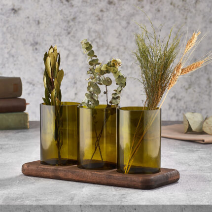 Joy Kitchen fles kaarsenhouder op houten plateau - set van 3