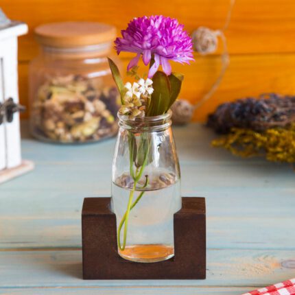 Planten geven kleur aan het interieur en dragen bij aan een ontspannen sfeer. Met de juiste bloempot laat je jouw planten extra goed tot haar recht komen! Plaats potten -/en vaasjes in verschillende kleuren, maten en hoogtes bij elkaar voor een levendig effect. Deze landelijke vaas van WDMT™ bestaat uit een losse vaas met houten staander. Deze transparante vaas brengt een warme en natuurlijke look binnen jouw interieur. Bovendien zijn bloempot houders zeer geschikt om eenheid aan te brengen tussen verschillende losse potten. Zo bewaar je de rust en kun je optimaal genieten van je planten. Een echte eye-catcher op zowel je tafel, vensterbank of bijzettafel.